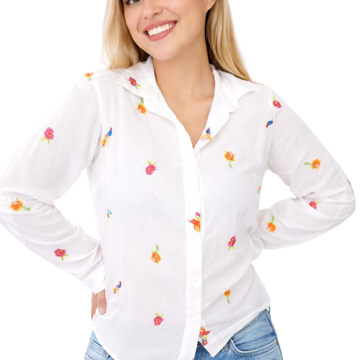 Camisa de fibrana con bordados de flores